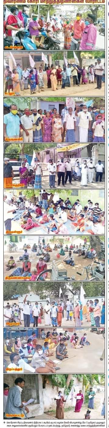 தமிழ்நாடு அனைத்துவகை மாற்றுத்திறனாளிகள் மற்றும் பாதுகாப்போர் உரிமைகளுக்கான சங்கம் டாராடாக் தனது மாவட்ட நிர்வாகிகளுக்கு சுற்றறிக்கை ஒன்றை அனுப்பியுள்ளது. அந்தச் சுற்றறிக்கையில், “ஊரடங்கு காலத்தில் வாழ்வாதாரத்தை இழந்து தவிக்கும் மாற்றுத்திறனாளிகள் குடும்்பங்களுக்கு மாதம் ஒன்றிற்கு ரூ. 5000 வழங்க வேண்டும், நூறுநாள் வேலைத்திட்டத்தில் நான்கு மணிநேர பணியுடன் கூடிய ஊதியத்தை மாற்றுத்திறனாளிகளுக்கு மறுக்காமல் வழங்குவதை உறுதி செய்ய வேண்டும்” போன்ற கோரிக்கைகளை வலியுறுத்தி, எதிர்வரும் ஜூலை 7ஆம் தேதிமுதல் காலவரையற்ற போராட்டத்திற்குத் தயாராகுமாறு கேட்டுக்கொள்ளப்பட்டுள்ளது.