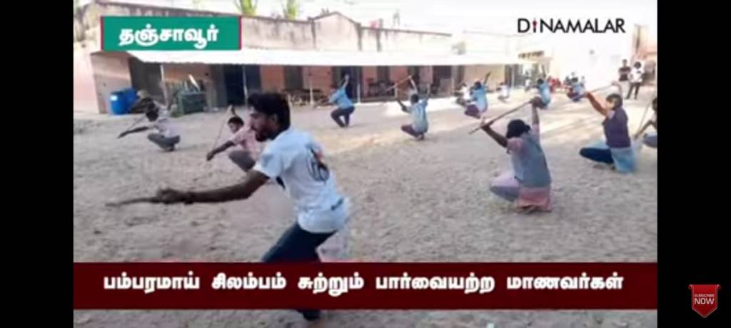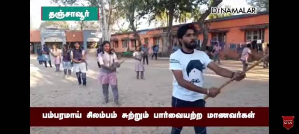 இந்தியாவிலேயே முதல் முயற்சியாக தஞ்சை பார்வைத்திறன் குறையுடைய அரசு மேல்நிலைப்பள்ளி மாணவர்களுக்கு சிலம்பம் சொல்லித் தந்து அசத்தியிருக்கிறது கொற்றவை என்னும் தன்னார்வ அமைப்பு. அதற்காக கம்பின் முனையில் மணியொன்றைக் கட்டி, அது எழுப்பும் ஓசையைக் கேட்டுக்கேட்டு சிலம்பம் ஆட பார்வைத்திறன் குறையுடைய மாணவர்களுக்குப் பழக்கப்படுகிறது.